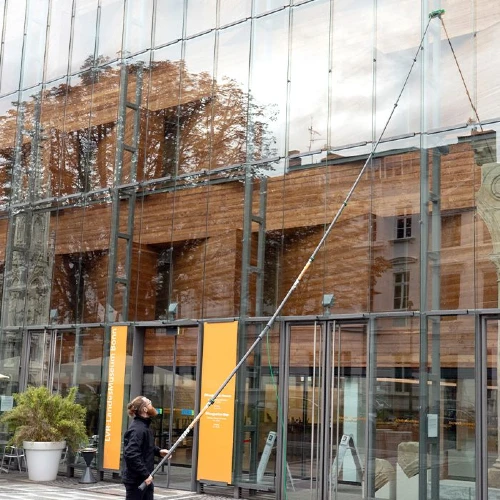 Escolher a escova certa é o que garante uma limpeza de vidros bem-sucedida apenas com água. Graças às cerdas inovadoras da Escova Elétrica Completa UNGER nLITE, a limpeza de janelas é muito fácil. As cerdas exteriores mais longas garantem um deslizamento suave, enquanto as cerdas interiores, com o seu poder de limpeza excecionalmente elevado, libertam a sujidade. Os jatos de água do bloco de bicos integrado no centro da escova garantem uma remoção potente da sujidade. Isto torna-a a escova ideal para a limpeza com água limpa.